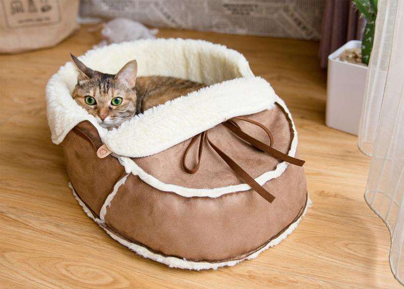 Sherpa Moccasin Shoe Cat Bed With Vegan Materials Unique Etsy