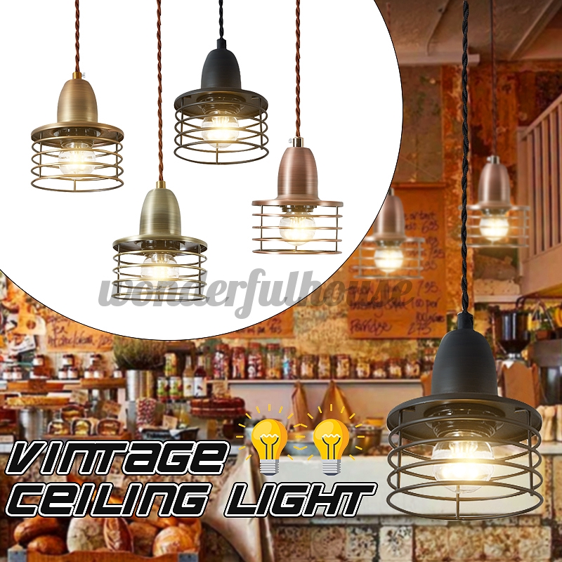 Vintage Industrial Metal Cage Ceiling Pendant Light Guard Wire Frame Lamp Shade Shopee Indonesia
