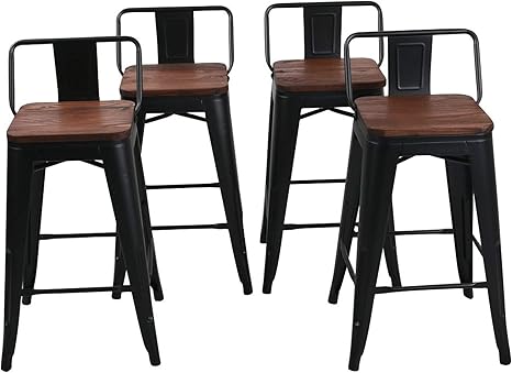 Amazon Com Modern Industrial Metal Barstool Counter Height Stools Set Of 4 Dining Chair 30 Low Back White Wooden Seat Kitchen Dining
